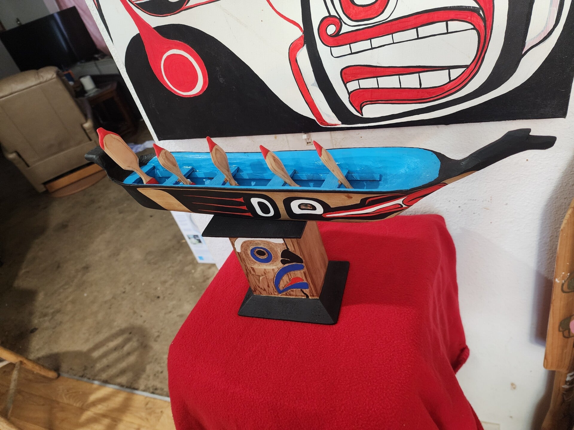 I am currently taking orders for rattles, hand drums design, hand drum construction, portraits, interior/exterior home decore, mini Canoes, house totems, full totems poles, paddles, strip canoes as well as dugout canoes. Please email me at sonnyworkmail740@gmail.com with any questions or orders